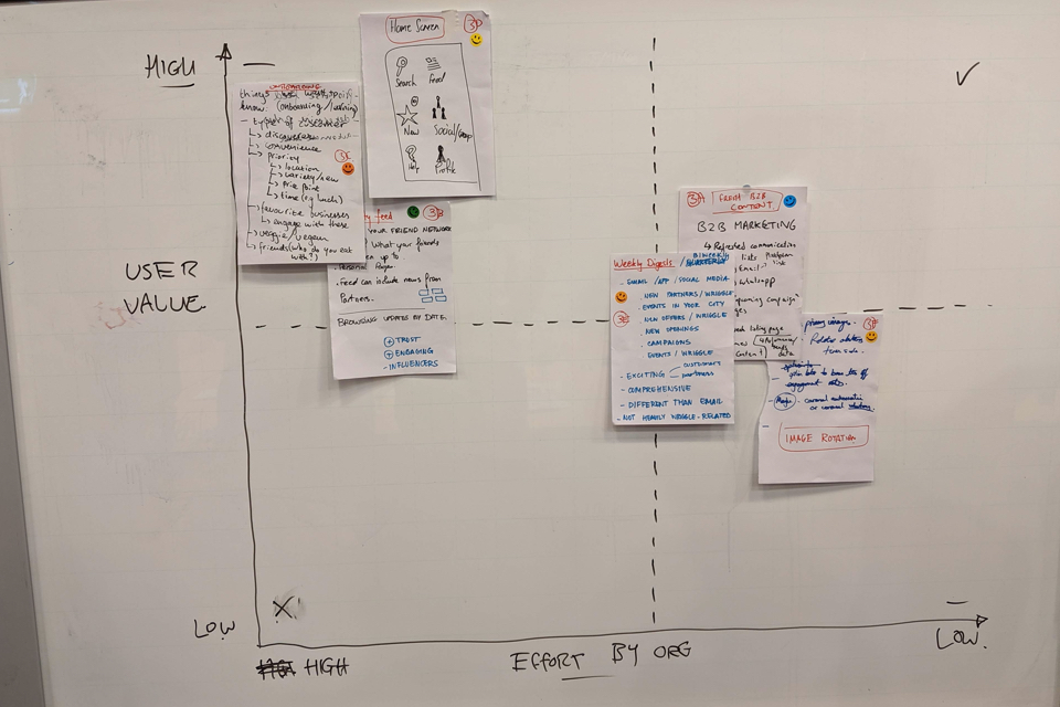 This overall vision of the service and it’s users allowed us as a team to begin spotting the flaws in the current system and where we should focus our efforts. We worked together to solve these problems via rapid ideation sessions and collaboratively ranking the ideas generated for their effectiveness and feasibility.